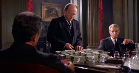 To Malone’s surprise, this turns out to be the beautiful Vicki Anderson (Faye Dunaway). Barely into the case, and she informs him that several nations—the Swiss, for example— are notorious for turning a blind eye when money is brought in, so it’s perfectly plausible that all that vast amount of cash could have been packed into suitcases and taken to Europe.