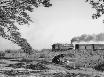 There was a point, when I was watching Meghe Dhaka Tara, that I was reminded of another much-acclaimed Indian classic, Pyaasa. A man, an artiste (a singer, not a poet, as in Pyaasa) wanders along on a grassy patch of land, singing. Far beyond is the railway track; around him are shady trees, a path, solitude. Here is a man practising his art, being one with nature, without a care for the world around him.