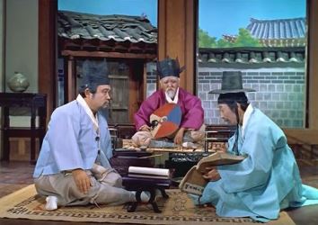 I liked almost everything about it. The story is pretty much like a fairytale: the good but poor and put-upon heroine finds true love, good is rewarded and evil is punished (or at least gets its comeuppance), all is well. What stops Maengjinsadaek Gyeongsa (and not just this version of it, but the 1956 version as well) from being irritatingly preachy is the humour in it. Maeng Jinsa, his decrepit old father, and Park Chambong, in particular, are hilarious.