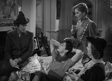 Later that day, both Edith and Sylvia arrive at Mary’s home for a meal. Mary has invited a couple of other women over, too. These are the sweet and gentle (and somewhat timid) Peggy Day (Joan Fontaine) and the honest, blunt but immediately likable writer Nancy (Florence Nash). While they wait for their hostess to appear, Mary’s guests catch up with each other’s lives. Inevitably, the topic of Stephen’s infidelity comes up. Sylvia and Edith are eager to spring this discovery on Mary, but Nancy (who’s too sensible) and Peggy (who’s too kind) try to dissuade them.