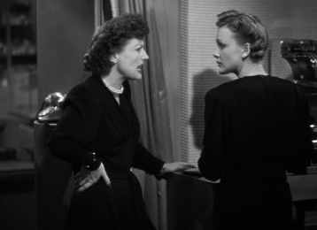 So Mary and Mother go off to Bermuda, and in their absence, Sylvia and Edith—both of whom have too much spare time and too much interest in other people’s business—go off to the store where Crystal Allen works. We are introduced to Ms Allen (Joan Crawford) before Sylvia and Edith are. She’s a ruthless woman, snapping maliciously at a fellow-worker, and paying another worker money to make sure she comes over to Crystal’s flat in good time to cook a great big meal which Cyrstal will pass off as her own handiwork when Stephen comes calling that evening. Crystal gloats over the fact that she’s managed to convince Stephen that she’s a home-loving, wholesome girl.
