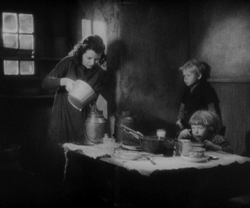 The film opens early one morning in the American countryside. The widow Tucker’s household rises at dawn and gets down to work. The eldest daughter Mary (Janet Gaynor) goes off to milk the cows; her mother (Hedwiga Reicher) attends to other chores, and the younger children go about cleaning themselves up as best as they can. It’s obvious, from the ragged and neglected look of the toddlers, that this is not a well-to-do family. Mary may not go around in tatters, but that’s about all the difference there is between her and her younger siblings.