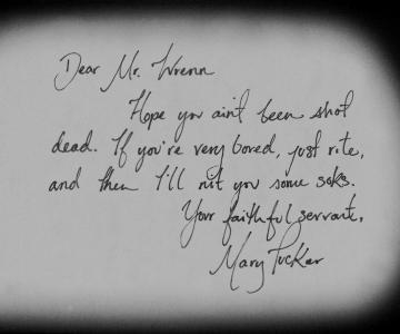 At the front, though, Tim realizes that Mary isn’t as bad a penny as he had imagined her to be. Encouraged by a poster exhorting women to support soldiers by writing them letters and knitting them socks, she sends him a poorly spelled but sincere little letter, hoping he hasn’t been badly hurt, and offering to knit him a pair of socks. Tim is very touched, until he discovers that Wrenn (who is now sergeant, and to whom Tim reports) shows a nearly identical letter that he has received from Mary.