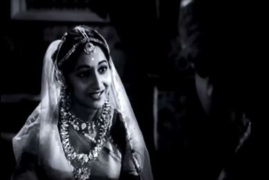Also, very importantly, he meets Rani Kasturi Bai (Arundhati Devi), his supposed fiancée. Kasturi Bai looks severe and distant to begin with; she ceremonially greets him with an aarti and so on, but there is obviously no warmth in her towards her betrothed. It’s only when the trolley of wines is wheeled in and Kasturi Bai reaches out to pour ‘Shankar Singh’ a glass that the situation begins to change: because Gauri Shankar stops her, saying he’s given up drinking.