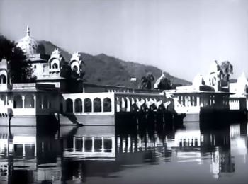 When the two men have ridden off on, the station master immediately sends a telegraphic message to someone, who prints it out and hands it over to a messenger. The messenger hurries, taking a boat across a lake and reaching a fine palace [I recognize this, and the locales: Udaipur, which has featured in God knows how many films in how many languages]. The General’s arrival has not gone unnoticed.