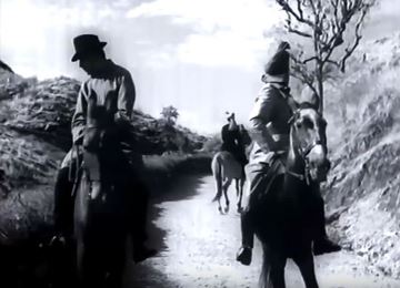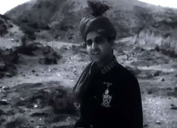 Cut to the present. Gauri Shankar hasn’t listened to his elder brother, and now arrives at the railway station in Jhind, accompanied by the General. The General imperiously orders the station master to arrange for two horses. This the station master does, looking curiously at Gauri Shankar (who’s trying to shield his face all the while).