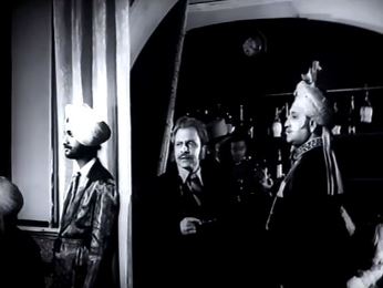 Things begin to move fast now. In between brief scenes of a disheveled and unshaven Shankar Singh sitting in a prison cell and being occasionally threatened by Mayurvahan, we have Gauri Shankar being king. In letter (he is duly crowned, with an edict being sent by the British, who—this being pre-Independence India—rule the roost), and in spirit (he soon endears himself to various servitors, especially his maid Champa and a guard, Rudraroop (Dilip Roy), whom Champa is in love with.