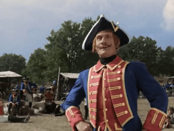 Soon, Fanfan and his fellow recruits have reached the place where the Aquitaine Regiment is encamped, and here they begin their training. The somewhat effeminate captain introduces himself before leaving the rookies to the far from tender mercies of the officers and sergeants who will train them, including Fier-à-Bras (Noël Roquevert). Fanfan, also, has made friends, especially with a bumbling but endearing character named Tranche-Montagne (Olivier Hussenot), whose wife and eight children follow the camp.