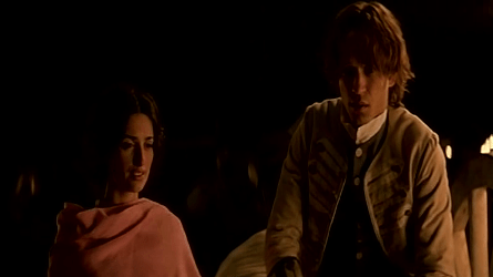 While the protracted (not to mention tiresome) jokes of the first half made me roll my eyes, what really made me dislike the 2003 Fanfan la Tulipe was the way it leaves all its humour behind and starts to take itself very seriously indeed. Fanfan and Adeline have some syrupy, sentimental dialogues—which, along with the chemistry between Penelope Cruz and Vincent Perez—would have been fine in a seriously romantic film, but bored me in what, till then, had been a fairly funny story. This romance, coupled with the tale of the traitor, eventually tipped the scales for me regarding which film I liked more: definitely the 1952 Fanfan la Tulipe, which is a lark from beginning to end, and which never (not even when Fanfan and Adeline have fallen in love, not even when death stares Fanfan in the face) ever becomes serious.