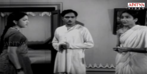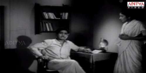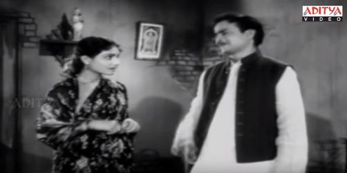 So Jagannadham manages to pay his fees, and when Chakrapani flies into a rage over the missing fifty rupees and accuses Kottaiah of having embezzled it, Malathi intervenes. She says that she was the one who took it by subterfuge. Chakrapani can rave and rant, but the money’s already gone.