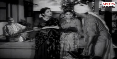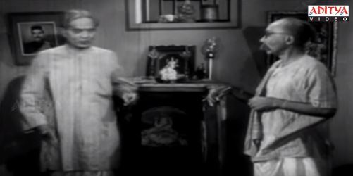 So Jagannadham manages to pay his fees, and when Chakrapani flies into a rage over the missing fifty rupees and accuses Kottaiah of having embezzled it, Malathi intervenes. She says that she was the one who took it by subterfuge. Chakrapani can rave and rant, but the money’s already gone.