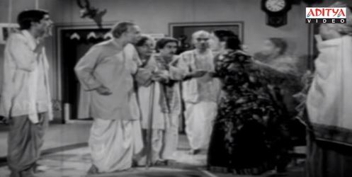 The eponymous Chakrapani (Chilakalpud Seeta Rama Anjaneyulu) is a very wealthy man, who is also very miserly. He had one son, who has been dead several years; his widow and offspring—three daughters and a son—live with Chakrapani. Chakrapani treats them the way he treats everybody who comes to his home asking for money: telling them to get lost. When the film opens, for instance, some actors who’ve been in a performance that Chakrapani attended come to him asking for baksheesh because it’s festival time (Diwali? I’m not sure). Chakrapani admits that he liked their performance, but why should he pay them?