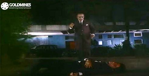 Just then, there’s an almighty banging at the door, and a flustered Raj, going to open it, finds Pinky’s father standing outside. The old gentleman says he’s been missing Pinky so much, and he’s so miserable, blah blah—and through the open door, someone shoots him dead, cutting short his misery. Raj, by now even more panic-stricken than before, only notices that the killer is smoking a pipe. The man races off, and Raj [no Einstein, this] immediately picks up the pistol that’s been dropped there. He’s busy handling it and getting his fingerprints all over it, when he remembers Pinky.