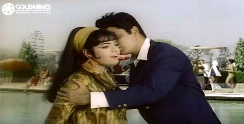 They part ways, and a smug Raj comes back to his friends to gather in the moolah he’s earned. He soon takes on another bet—to get himself a date with a pretty girl (Mumtaz) they see beside a swimming pool, and Raj succeeds here too. It’s only later, when he’s waltzed off with her, that the friends who made the bet get to know that this is none other than Sapna, Raj’s girlfriend, whom he’ll be getting married to, soon. [For once, a hero doesn’t get the girl merely by singing a song].