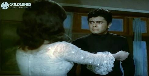 But it is, after all. Because the man turns around, and Raj finds that this is an old friend: Johnny alias Mr Malhotra (Rajendranath). Johnny when he’s with his Anglo-Indian girlfriend, Mr Malhotra when he’s with his Punjabi girlfriend (Shammi), this man’s a two-timer whose comic side plot is completely unnecessary and irritating.