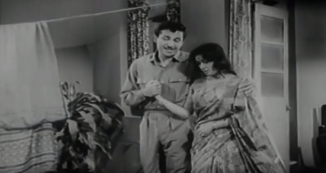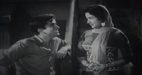 In the midst of this conversation, it emerges that Naani has returned from Calcutta, bringing with her her granddaughter Rajni, who had been studying in the city all these years. And lo and behold—here comes Rajni (Nanda), and Vijay is completely bowled over. He teases her, pulls her leg, embarrasses her with his goggle-eyed praise…