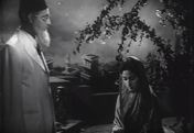 The story begins on a dark night, when an old man (? Every source on the Net seems to tag this actor as Nana Palsikar, but while he looks very familiar, I’m certain this isn’t Nana Palsikar Kumar, as identified by several readers) alights from a tonga and totters to a house, where he asks for the doctor. The doctor isn’t in town, says the man who opens the door. He will be back two days from now. The visitor, now desperate, laments that he is in urgent need of a doctor, and he doesn’t even have any place to stay; he’s an outsider in this town. The other man suggests a place where he might go; there’s a haveli nearby, whose mistress lets out rooms to people in need.