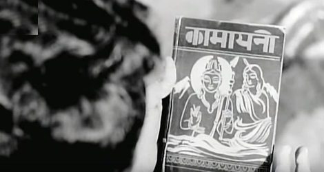 Without further ado, then, the ten scenes. All, as usual, are from pre-70s Hindi films that I’ve seen. The one criterion I’ve imposed on myself other than this is that the book should be an actual work, not a fictitious publication written by a character in the film (or conveniently placed in the film as a prop to further a theme—which is why books like Daera and Anupama, in the films of the same names, don’t count). It should be a book you and I could possibly read.