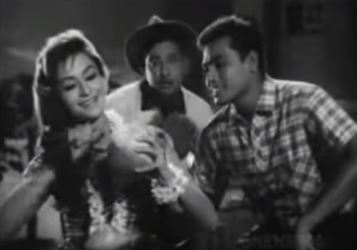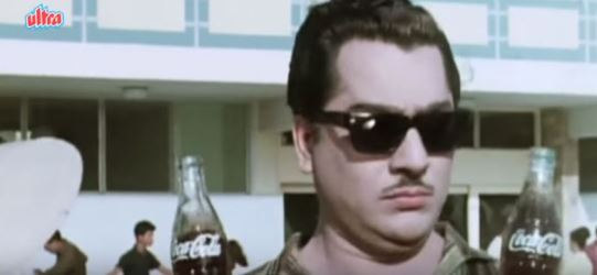 3. Tu mera jo nahin (Bheegi Raat, 1965): (With Pee cola pee cola being the refrain). Bheegi Raat was best known as being a remake of Love Affair/An Affair to Remember, and for Dil jo na keh saka. This song, picturized on Shashikala and Pradeep Kumar, along with a bunch of Coca Cola-guzzling extras (and Rajendranath, inexplicably clad in a woman’s swimsuit), is however also a good one, with a nice infectious beat to it. And what an advertisement for Coca Cola! She tells him that even if he will not be hers, she will not stand him being another’s. So, even if he goes off—let him drink Cola! (Okay, I don’t see the connection, but I suppose he will need something to drown his sorrows in, if he cannot be with the woman he loves, and a woman he doesn’t want is clamouring for attention).