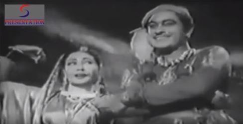 10. Jaiyo jaiyo sipahiya bazaar daal meri chulhe chadhi (Nishaan, 1949): And to end, a song that ties in to the first song on this list, in having two dishes (daal and nimbu ka achaar) in common with that. Bhanumathi’s character, a wealthy girl named Ranjana, pretends to be a maidservant in an attempt to flee a lecherous zamindar. But the zamindar’s troops are in the way, and the only way Ranjana can flee is by diverting their attention. Which she does by singing a song, recruiting them, one by one, to help her with the cooking.