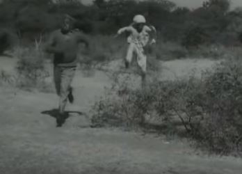 Because, setting off in a jolting bullock cart at an unearthly hour of the morning, Shome soon begins chatting with the rather loony cart-driver. They’re going along at a merry pace when they run straight into a water buffalo. A menacing water buffalo, so dangerous that despite the cart-driver warning Shome, both men end up being chased by the animal through the scrub. It’s all quite terrifying for Shome.