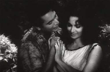 2. Yeh hawa yeh raat yeh chaandni (Sangdil, 1952): This was one of those songs I was referring to in the introduction to this post when I mentioned that there were some frauds singing a serenade too. Dilip Kumar’s character in Sangdil is not in love with Shammi’s character: he knows well enough that though she pretends to be in love with him, all she wants is his wealth and his position. He knows it, and he lets her know that he knows—but he serenades her anyway. This breeze, this night, this moonlight: all will be sacrificed to your charms. For you are the most beautiful of all God’s creation. Intoxicating, heady as wine, sublime.
