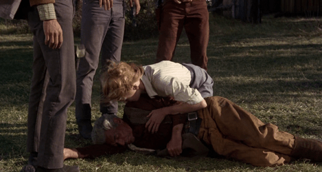 With the result that, the next time Tim Strawn comes calling, he is able to shoot Frankie Ballou dead, with Kid Sheleen arriving, tottering and giddy, on the scene only after Strawn has ridden off.