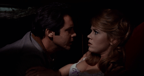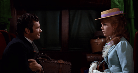 …until she realizes that this man is under arrest, and is handcuffed to the older man sitting next to him. Catherine is swiftly taken away, to be seated further down the carriage, with a respectable man, a priest (Dwayne Hickman).