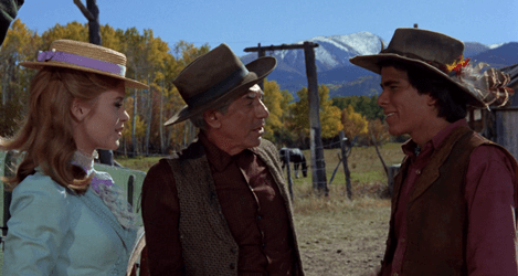 Catherine goes on her way, and alights at Wolf City, where her father, Frankie Ballou (John Marley) comes to fetch her from the railway station and take her home to his ranch. Frankie has only one helper at the ranch, and he’s very devoted: Jackson Two-Bears (Tom Nardini) is Sioux and because of that is given the cold shoulder by everyone in Wolf City—everyone except Frankie, who’s given Jackson this job, for which Jackson is thankful.