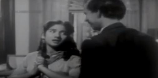 Shyama here, while an aspiring theatre artiste, finds herself shoved onto the stage rather earlier than she’d been prepared for. But she gamely takes on the challenge, and belts out a song and dance. Shamshad’s voice suits the feisty, ‘don’t give a damn’ nature of the lyrics: she’s so full of life, so zesty and unabashed.