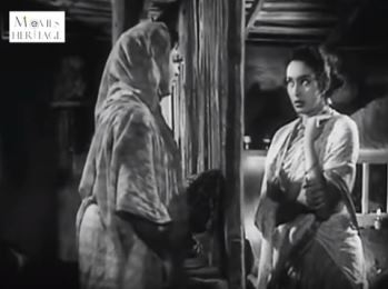 Billed first in the cast, however, is Nutan, who plays Gauri. Gauri lives with her Chacha (Shivraj) and Chachi (Praveen Paul). Chacha is an inveterate gambler who has convinced his wife that he’s busy hunting for a job—even Chachi knows that her husband is jobless. The only income of the household is courtesy Gauri, who works as a maid at a relatively well-off household.