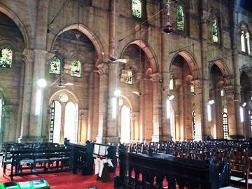 Built in the late 1870s (and consecrated in 1887), All Saints’ was designed by Sir William Emerson, the architect who also designed Kolkata’s Victoria Memorial and Mumbai’s Crawford Market. This cathedral is all beige stone, with rows of arched windows, almost like French windows, down both sides. At one end, there’s a beautiful rose window, and more stained glass decorating the windows as well as behind the altar.