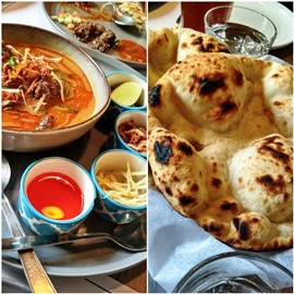 By the time we were done (a short ride, since we didn’t know where to go, or what specific places to see in the University), we headed for a restaurant named Eden, at the Samrat Hotel. After the heat and grime (my shoes were still full of sand), this was truly paradisiacal. It was cool and pleasant, there were plants all around, and the food was simply heavenly. Nahari with khameeri roti, mutton fry with Malabar parotta, and chicken with bhut jholokia and tingmo were what we shared, with a velvety panacotta to end.
