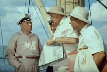A Lively Voyage begins tamely enough. Shuleykin (Evgeniy Leonov) finds himself in a tropical port at the other end of the world, and desperate to get back home to Odessa. He’s so desperate that he will take on any work on any ship heading for Russia—as long as he can come home. Fortunately, he has found an agent (Nikolay Volkov) who assures Shuleykin that he can get Shuleykin a job on a ship.