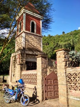 On the way back to Nairobi, as we entered the highlands leading up to the last stretch, we stopped at the Catholic Church at Mai Mahiu. This church, which is also known as the Travellers’ Chapel (because it’s right on the main highway), is interesting for two reasons: firstly, it was built by Italian POWs in 1942. Secondly, it’s one of the smallest churches in the world: only six tiny pews, as I saw when we went in.