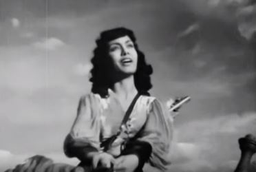 1. Mera salaam le jaa (Udan Khatola, 1955): When I wrote of ‘peppy’ songs picturized on Nimmi, this was the one I was thinking of. Nimmi here is the leader of a group of girls riding through the countryside and watching an aviator flying above in his aeroplane. He cannot possibly hear them, but that doesn’t deter her (and her sahelis) from singing a greeting to him. A greeting, and a warning: there’s a storm ahead, beware. Nimmi is absolutely beautiful in this film; if I had to name my top favourite song when it comes to Nimmi looking gorgeous, it would be O door ke musaafir, also from Udan Khatola—but Mera salaam le jaa comes a close second. With her curly hair floating in the breeze, and that slightly lop-sided and attractive smile, she’s very pretty indeed.
