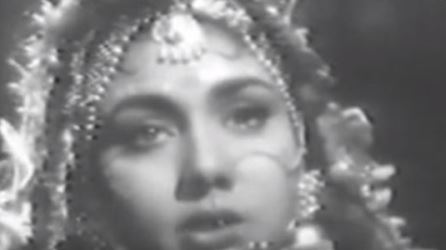 9. Ae mere maalik mere parvardigaar (Sohni Mahiwal, 1958): Nimmi’s talent for being able to portray the distressed and despairing was rather apt for Sohni Mahiwal: in this classic tragic romance, Sohni—believing her beloved Mahiwal (Bharat Bhushan) to be dead, does not resist when she is married off to a potter (Om Prakash). She is not just too sad, she’s also in a daze where she doesn’t really know what’s happening: at times she even thinks it’s Mahiwal she’s marrying. But when it’s time for her bridegroom to consummate the marriage, Sohni regains her reason long enough to offer up a prayer, begging the Almighty to save her from this. It’s a haunting song, sung with minimal instrumentation (just a brief beat every now and then), and Nimmi is beautiful—and very convincing as the desperate woman, reaching for the one support she can think of.