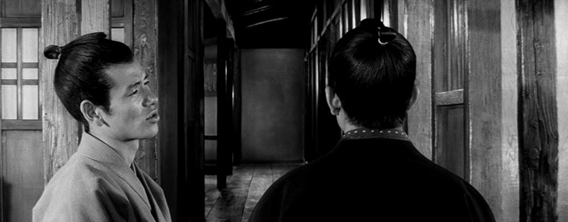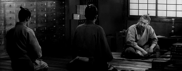 In short, Yasumoto refuses to conform. He refuses to wear the regulation uniform worn by Akahige, Tsugawa and the other doctor, Dr Mori (Yoshiyo Tsuchiya). He lies about, looking sullen. And when Tsugawa tries to egg him on to get up and stop sulking, Yasumoto actually runs off—coming up short at a small hut which sits at the far end of the clinic’s yard.