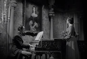 But the housekeeper at Dragonwyck, Magda (Spring Byington), also says something to the same effect, that Nicholas’s long-dead great-grandmother still comes to the Red Room at night sometimes to play her harpsichord. Miranda brushes it off and tells Magda that’s just kitchen gossip. Magda, however, isn’t convinced.