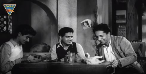 But Girdhari knows that his pals, once they learn he’s fine and has got the money, will want to celebrate with liquor. This happened, this close shave with disaster, because he wanted to spend his hard-earned money on drink, thinks Girdhari. No, he won’t let this go down the drain now. Quickly, giving Sher Khan and Muni the slip, he races off home and hides, telling Geeta to tell his friends, if they come, that he isn’t around.