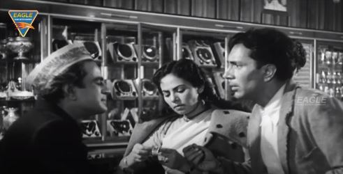 Oddly enough, the songs. Pandit Amarnath composed the music to Majrooh Sultanpuri’s lyrics, and while the songs aren’t dreadful (I can’t think of a Hindi film from the 50s which had outright awful songs), they aren’t utterly memorable, either. Worse, they interfere with the narration of the film. The Clerk and the Coat is not a story that easily lends itself to songs. Perhaps a background song now and then, but that’s all I can imagine, given that Girdhari and Geeta are driven to their wits’ end finding ways to keep body and soul together. In such a situation, bursting into song, no matter even if that song is an expression of their woe, is just far too unreal.
