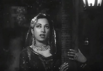 9. Kise maaloom thha ik din mohabbat bezubaan hogi (Saqi, 1952): And again. Two lovers, separated, singing the same song. The situations in which Madhubala’s and Premnath’s characters find themselves in this entertaining fantasy couldn’t be more different. She, the princess, has just realized that it’s impossible to rid her father (the Sultan) of his belief that his actually treacherous wazir is a gem. Plus, the said wazir has had her lover imprisoned.