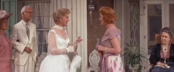 Yes, there is a brief stand against anti-Semitism (also when the Upsons crib about a Jew buying the plot of land they have their eye on, the first time Mame meets them), but it’s nothing compared to what’s in the book. That final half-hour of the film is not part of the book; in the book, Patrick’s meeting Pegeen is a completely different story, long after Mame has gotten rid of Gloria Upson – and she gets rid of the Upsons by laying bare their prejudices. It’s a very hard-hitting (and long) scene, and Mame is at her best. That scene, versus the vastly watered down version in the film, was to me one of the biggest differences in the characterisation of Mame from novel to reel.
