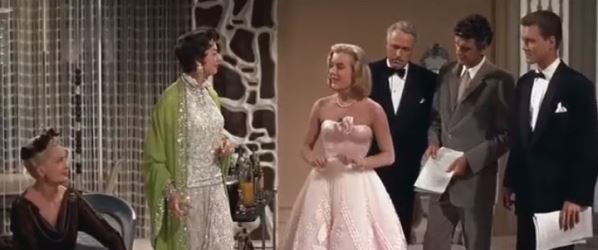 None of this occurs as is in the film. The three beautiful prospective brides, as well as the refugee children, are completely excised from the film, as is the awful first girlfriend, Bubbles. Instead, Patrick plunges headlong into a romance with the very snobbish but stupid Gloria Upson (Joanna Barnes), and the final half-hour of the film is devoted to Auntie Mame’s careful (or careless?) dismantling of that relationship.