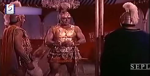 What it’s about: The invasion of India by Alexander the Great. Alexander (Dara Singh), still a callow youth (or as callow as Dara Singh can manage) falls in love with a former slave called Cythia (Sithia? Seethia? I can’t tell; played by Mumtaz) and is forced, thanks to emotional blackmail by his mother (Veena) to give her up. He becomes king after the assassination of his father, and sets off to invade India— unaware that the faithful Cythia, having disguised herself as a soldier, has also tagged along. In India, Porus (Prithviraj Kapoor), along with his sons Kirat (Premnath) and Amar (Prem Chopra) stands up for Bharatvarsh against the machinations of the traitor Ambhi (Jeevan) the ruler of Taxila, who offers his fealty to Alexander.