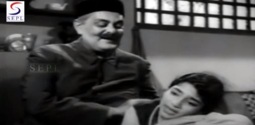 Do Phool begins the way Heidi does: with a little girl going up a mountain (in this case, a hill, really) with her maternal aunt, who’s taking her there. Shankari (Amir Bano) has looked after Poornima (Baby Naaz) ever since Poornima was left orphaned as a baby. Now Shankari Mausi has decided that Poornima should be looked after by her paternal grandfather, Sagar (Bipin Gupta), a reclusive carpenter who lives by himself on the mountaintop, spurned and ostracized by all the villagers of Neecha Nagar, where Shankari lives.