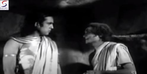 The story is set in what seems like ancient India, in a town known as Aryanagar. The Aryans, who are the invaders and now the rulers as well, are headed in Aryanagar by their chieftain, Kodandavarma (Chandramohan). Kodanadavarma’s daughter Jayanti (Leela Chitnis) lives with her father and is betrothed (for reasons of political and administrative strategy, not love) to Uttam (Ulhas), her father’s spy master in Aryanagar.