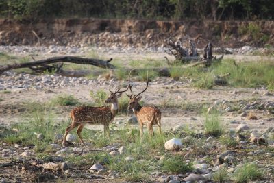 Within moments, we had started seeing wildlife. Spotted deer, two magnificently antlered stags having what seemed like a friendly sparring bout: