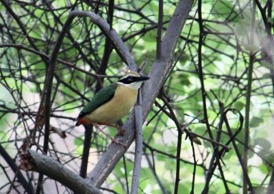 What the LO was most excited about, though, was a quick glimpse of the colourful (so colourful, in Hindi it’s called navrang: ‘nine colours’) bird, the Indian pitta. Why excited? Because though she’s never seen it before, she’s heard of it. And she was delighted that her father, our official bird photographer, got a shot of it. Her Indian pita’s photo of an Indian pitta.