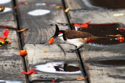 And there were birds. White eyes and sunbirds, chirping and hopping about among the trees. The occasional magpie robin, or a wagtail. And seemingly dozens of red-whiskered bulbuls, handsome in their white, grey, black and crimson plumage, filling the air with their excited cheeping. There were plenty of these everywhere we looked…